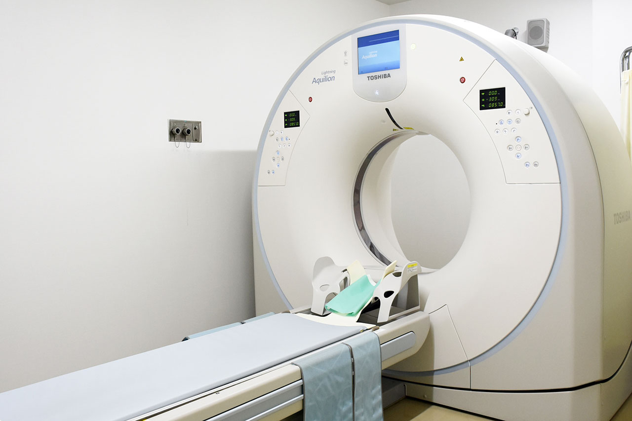 X線を使って身体の断面を詳細に撮影する検査装置です。レントゲン検査よりやや多めの放射線を使っての検査ですが、身体に影響が出るとされている量よりも少なく抑えられています。そのため、CT検査の際に、放射線の被ばくによるリスクを心配する必要はありません。