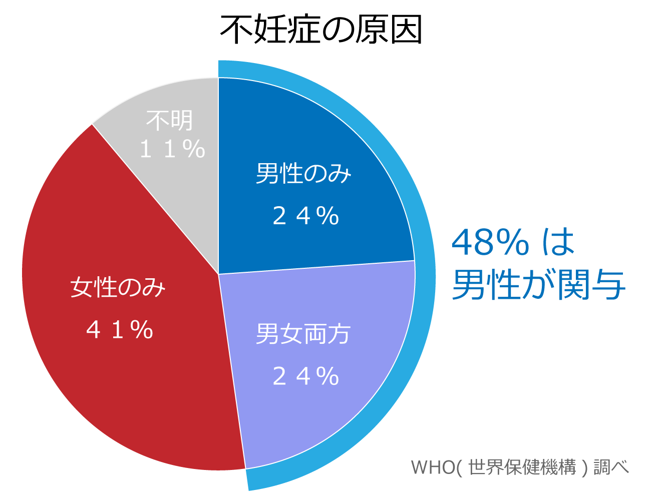 不妊に悩む夫婦は8組に1組の割合で存在します。不妊の原因は女性側と思われがちですが、実際は約50%の割合で男性にも問題があります。